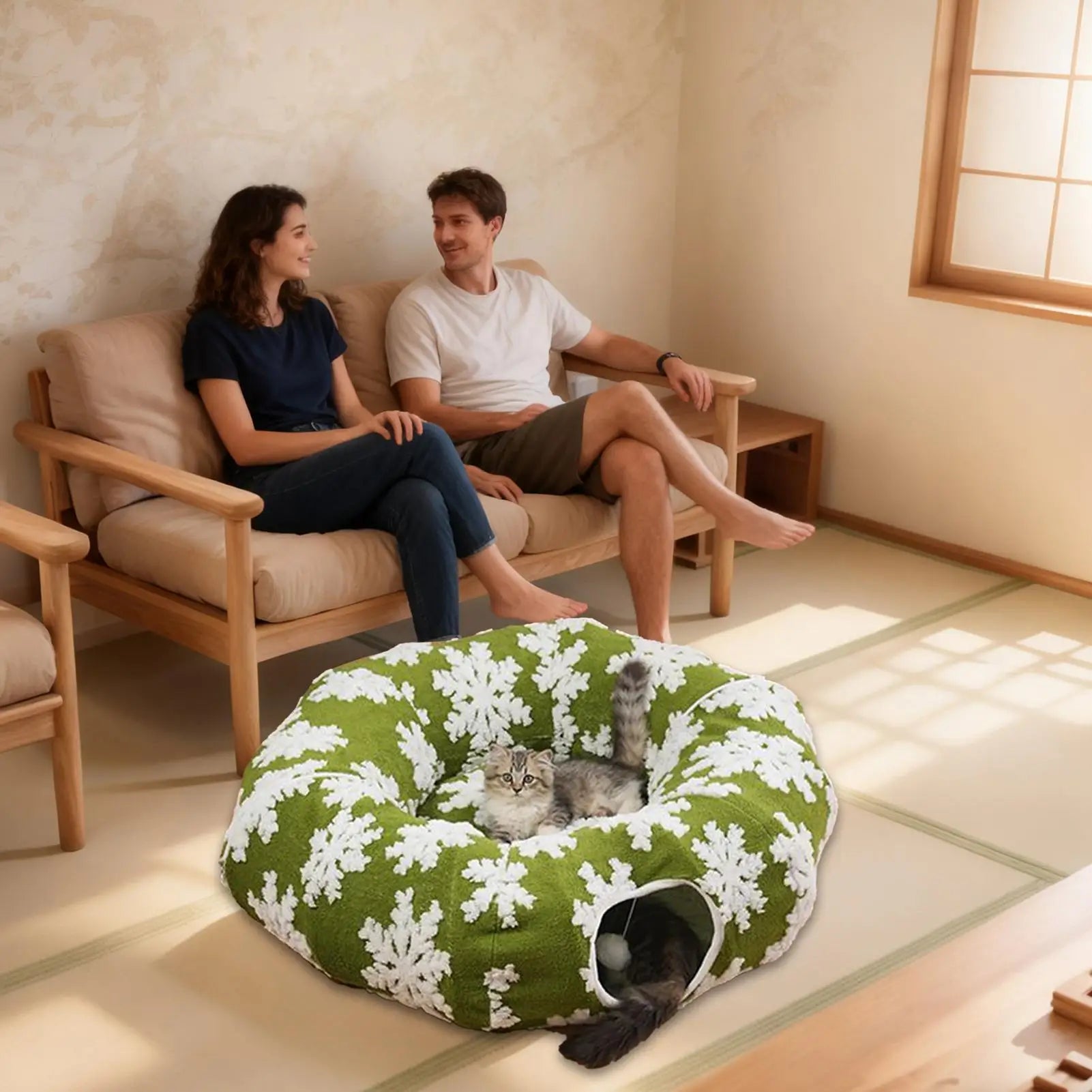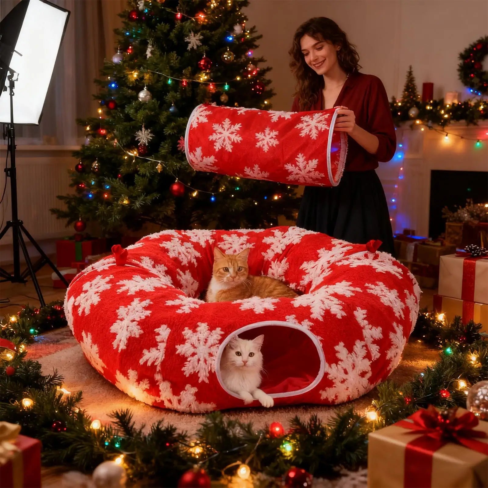 π Christmas Cat Tunnel Bed β Cozy Donut Nest & Play Tunnel for Kittens