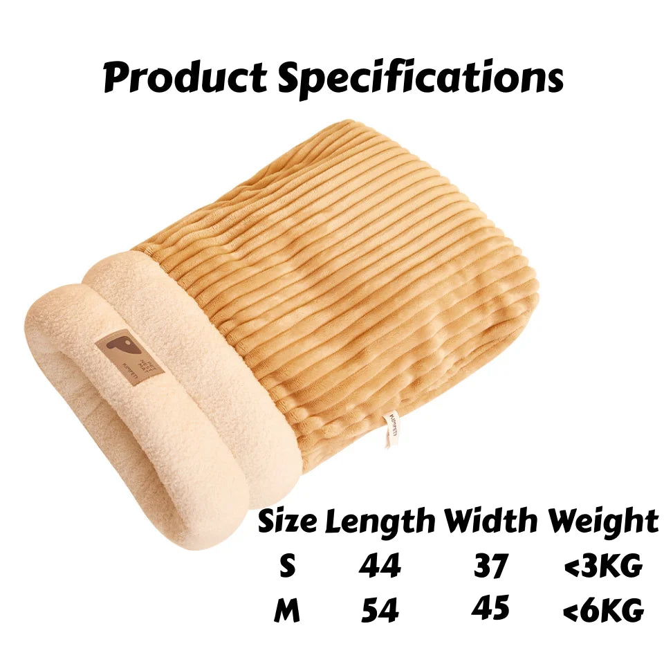 Designed with a soft, enclosed sleeping bag shape, this plush bed creates a warm, secure hideaway β perfect for anxious cats or small dogs who love to snuggle.